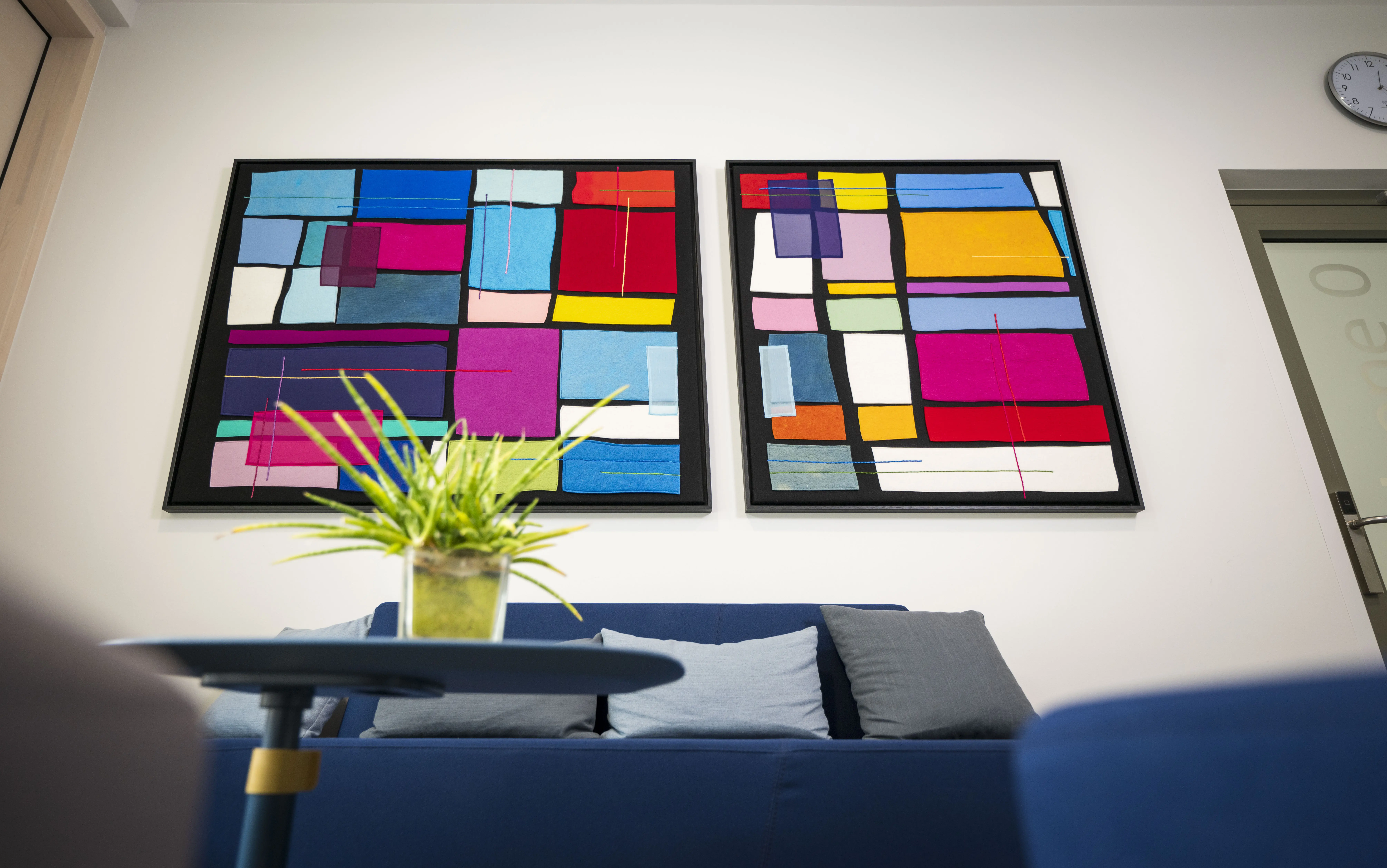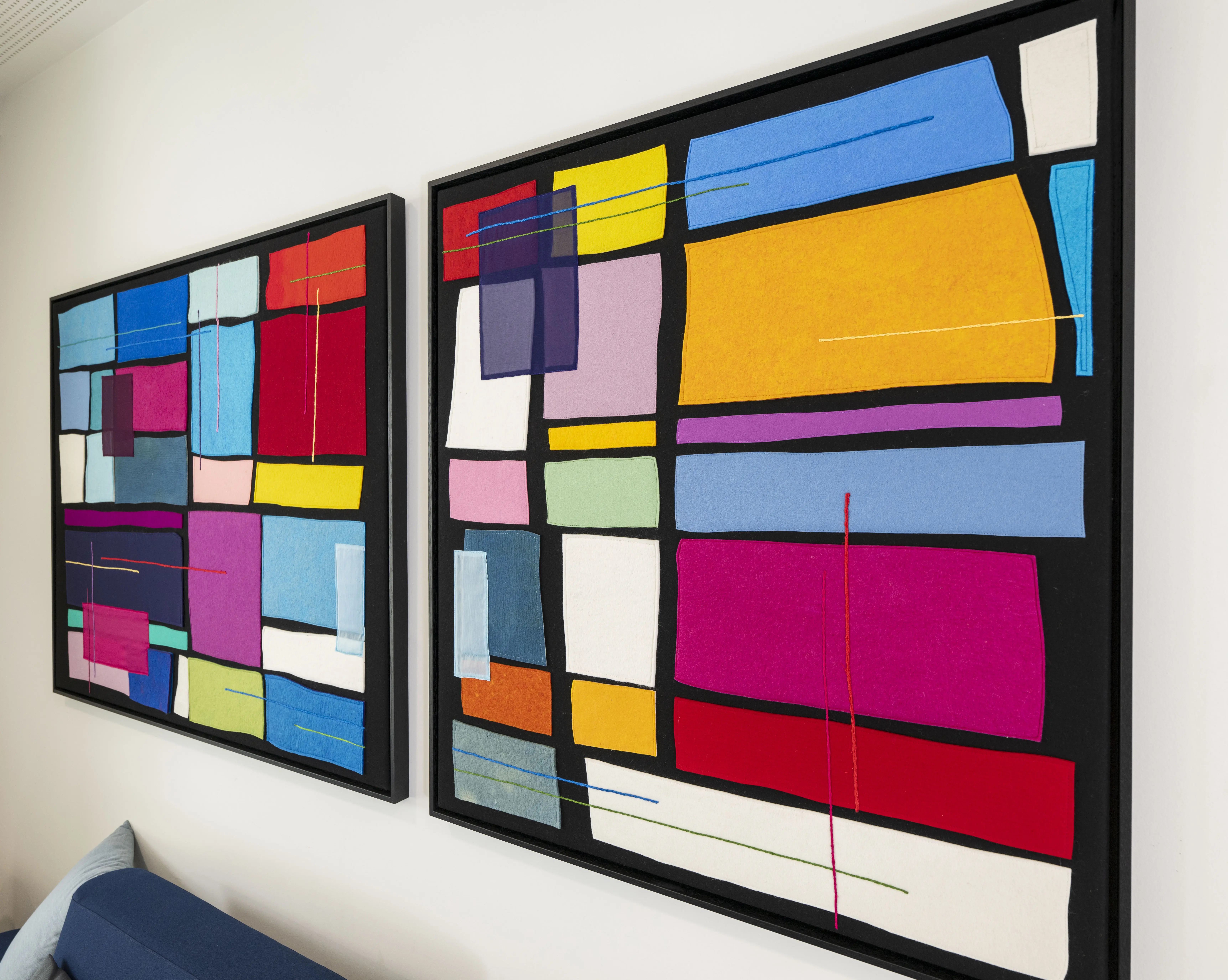 Zweiteilige textile Wandgestaltung im Foyer - Zentrum Bildung der EKHN - Darmstadt